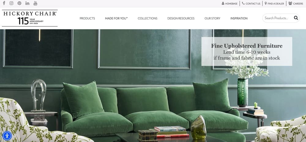 - Domestic workroom roots: The company emphasizes its Hickory, North Carolina workroom heritage since 1911; see the Hickory Chair Centennial Story.