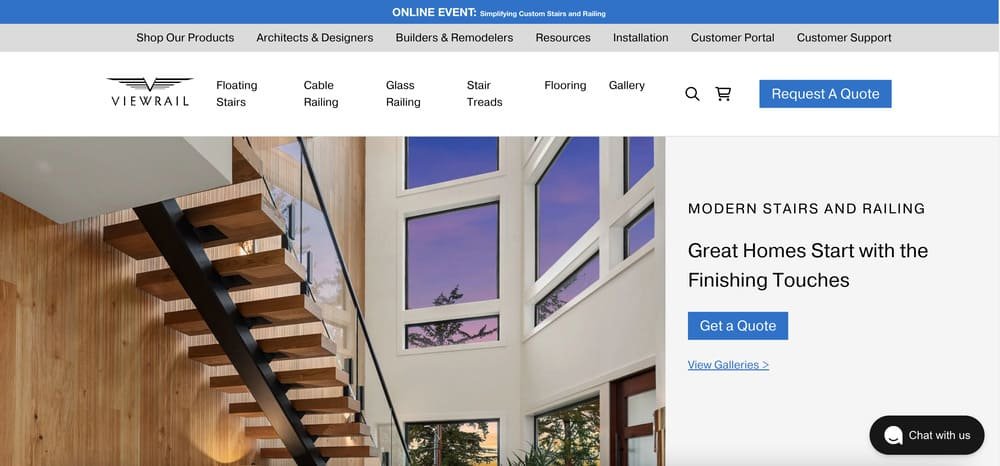 Modern minimalism meets robust engineering at Viewrail, America’s innovator in floating stair and railing systems.