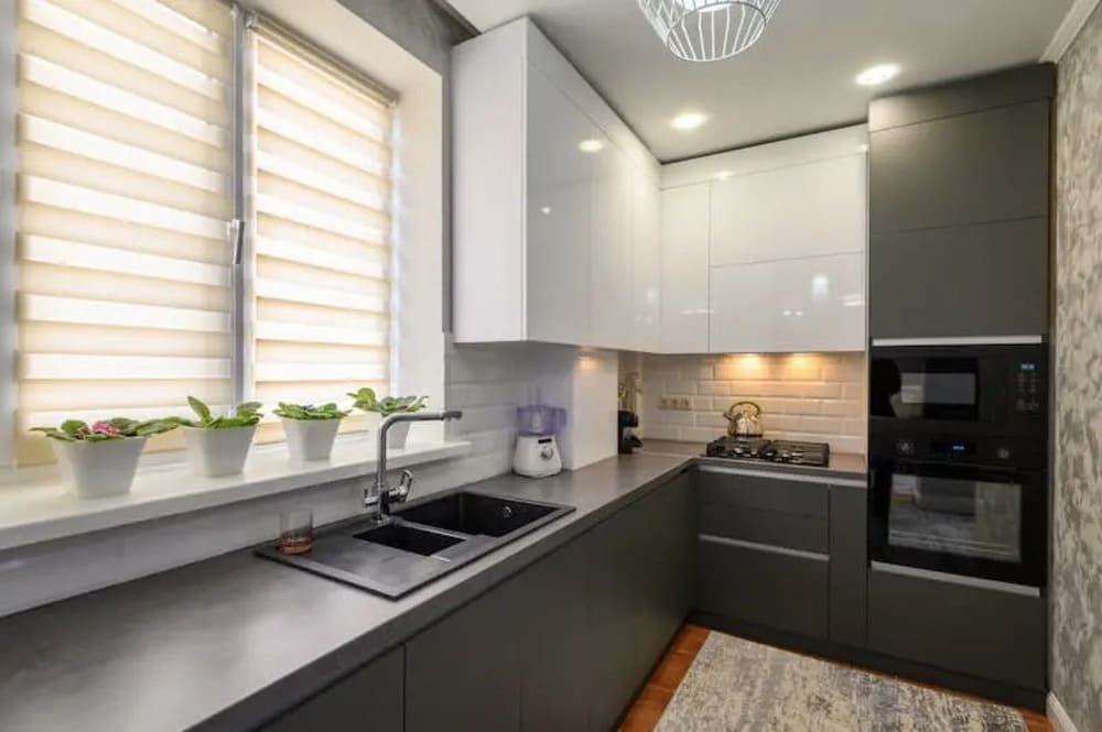 - Recommended materials: Sintered stone or large-format porcelain for worktops; matching panels for upstands/splash.