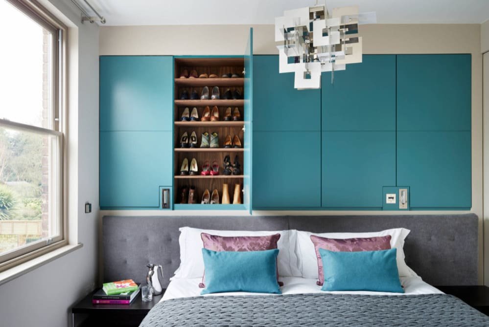 Concealed storage—under-bed drawers, headboard niches, and wall-integrated wardrobes—reduces visual clutter.